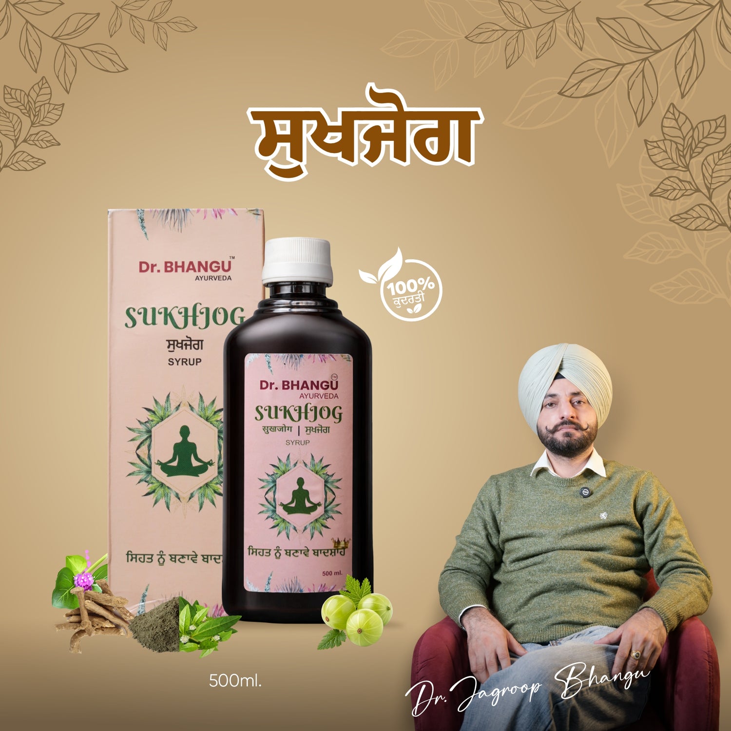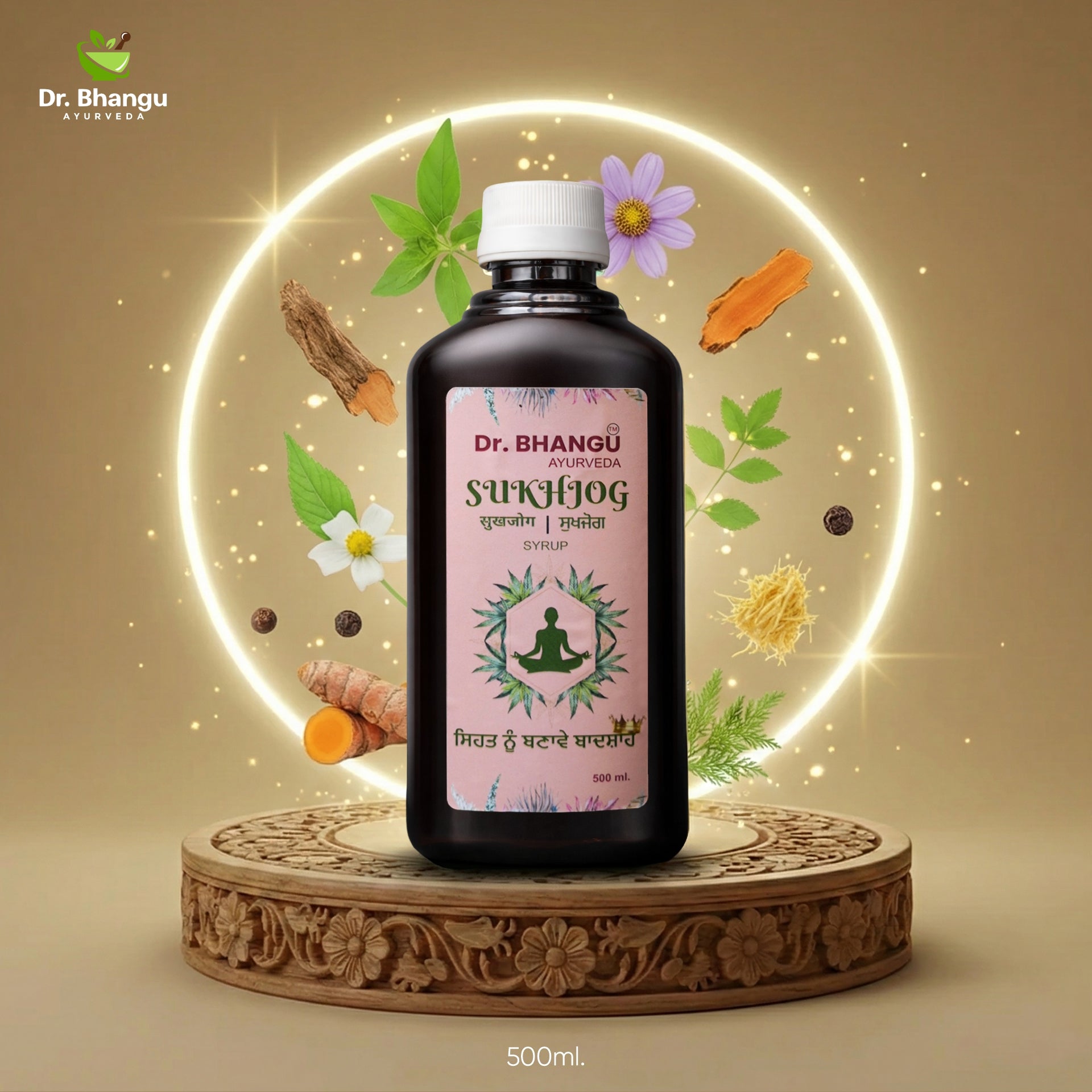 Dr. Bhangu Ayurveda Sukhyog Syrup is a powerful Ayurvedic formulation designed by the best Ayurvedic doctor in Fatehgarh Sahib. It supports respiratory health, immunity, digestion, and stress relief. Made with natural herbs like Punarna, Bhringraj, and Amla, this syrup promotes overall well-being with no artificial additives. Embrace Ayurveda for a healthier life!